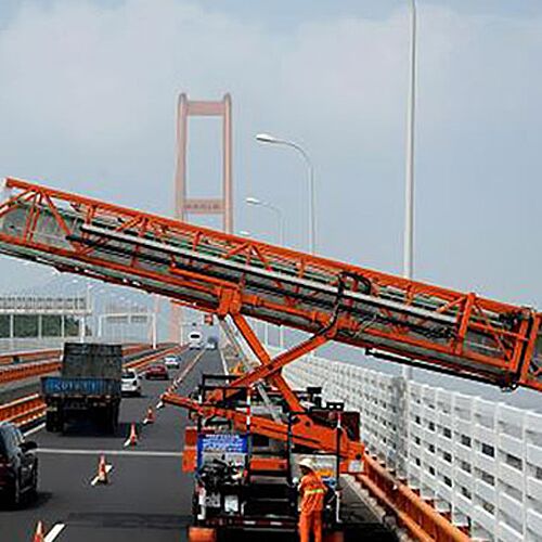 橋梁檢測車廣泛適用於大中型橋梁的病害維修和預防性檢查作業,如對大橋下麵各結構進行全麵的檢查、維修與維護(油漆、噴砂、安裝、拆卸),包括對大橋主梁梁底裂紋檢測和全橋支座檢查養護,也可以安裝和維護橋下管道和電纜。